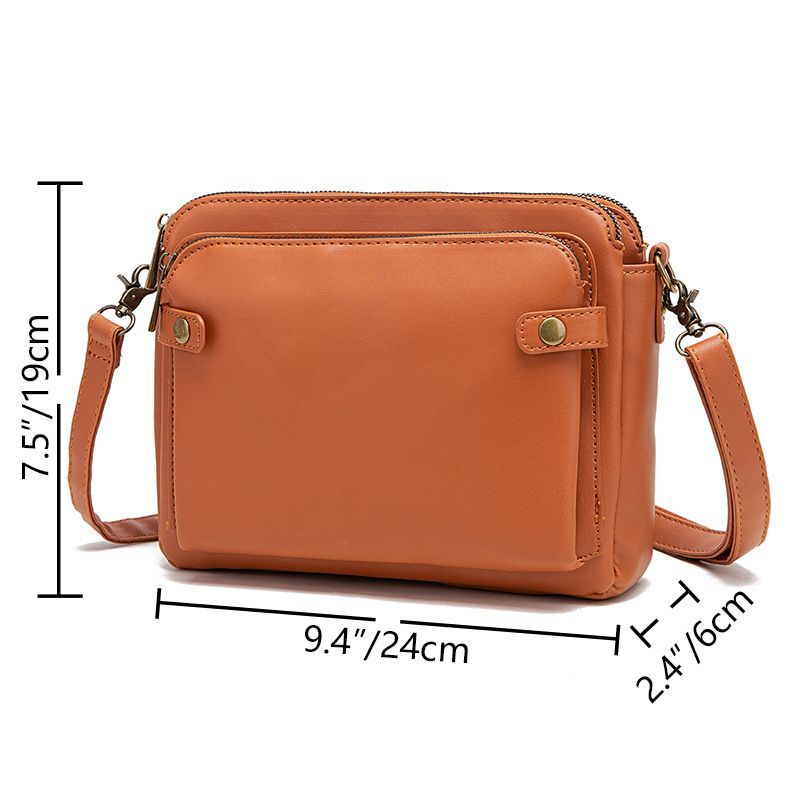 This leather bag is lightweight in appearance, yet large in capacity. Perfect for carrying your iPad mini, wallet, keys, cell phone, perfume, umbrella, sunglasses, cosmetics, scarf, and other daily essentials. Strong magnetic snaps plus external snaps on both sides for double protection, multiple card slots and bill positions, zippered insert pockets, multiple independent compartments to meet your daily travel needs.