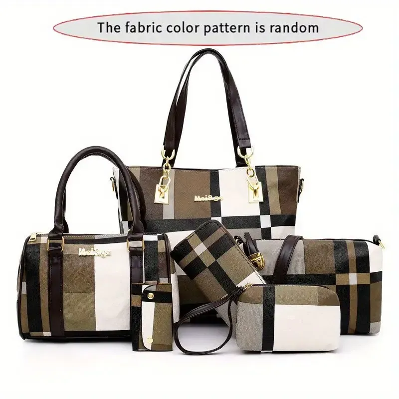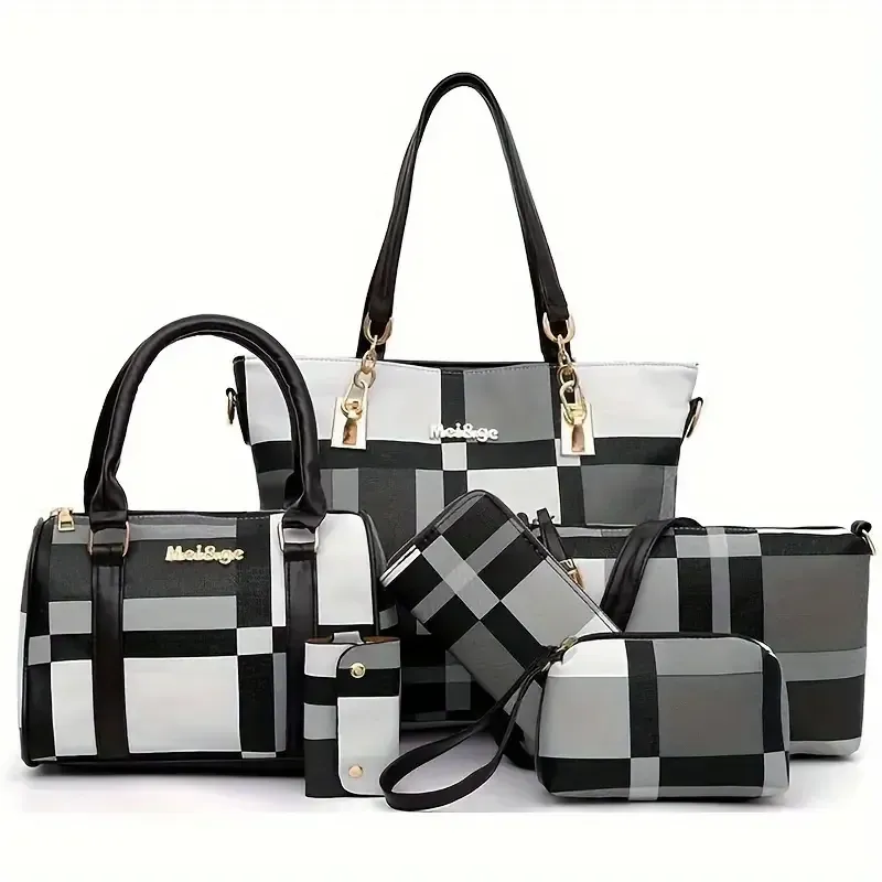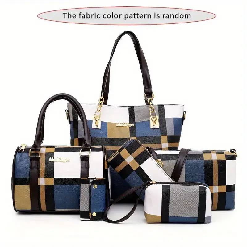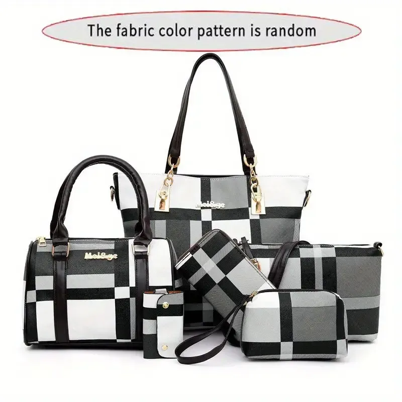 Introducing our versatile 6pcs/set Large Capacity Shoulder Bag, a perfect blend of style, functionality, and convenience. This exquisite collection is designed for the modern woman who values both fashion and practicality. Crafted with high-quality materials and featuring a chic checkered pattern, this set not only enhances your wardrobe but also meets your everyday needs with grace.