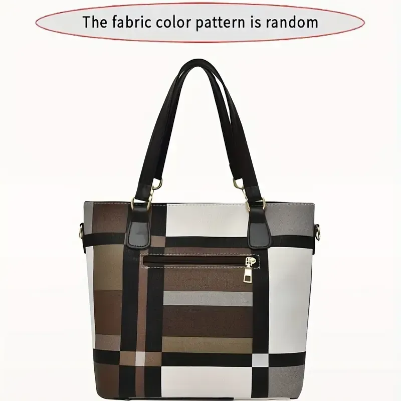 Product Description: 6pcs/set Large Capacity Shoulder Bag with Checkered Pattern and Multiple Functions