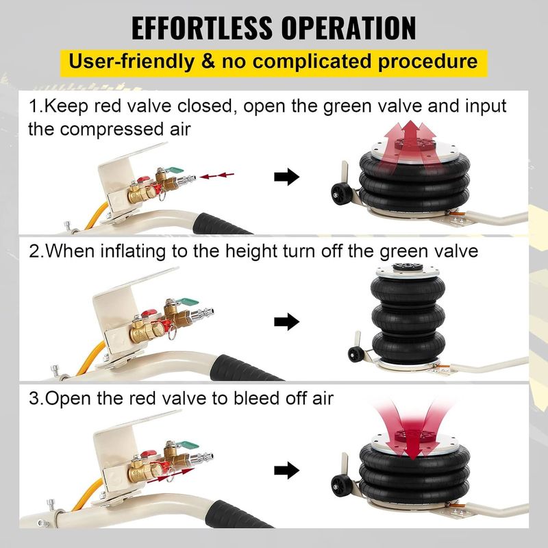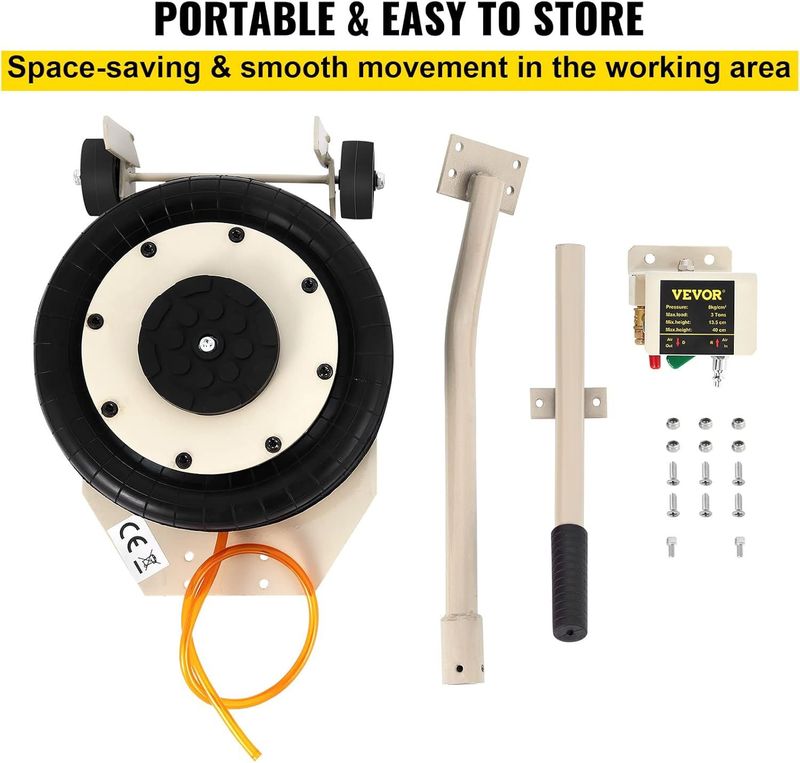 The airbag jack features a long handle and two casters for effortless maneuverability, allowing you to position the jack beneath your vehicle without straining your back.