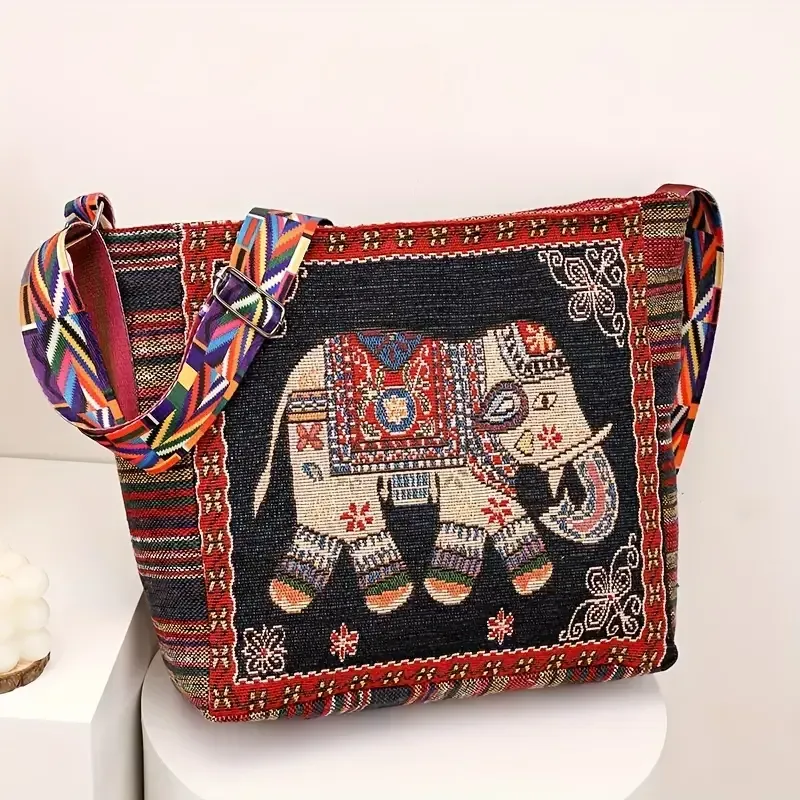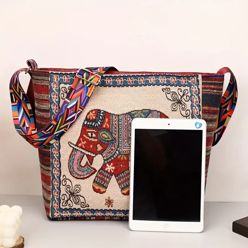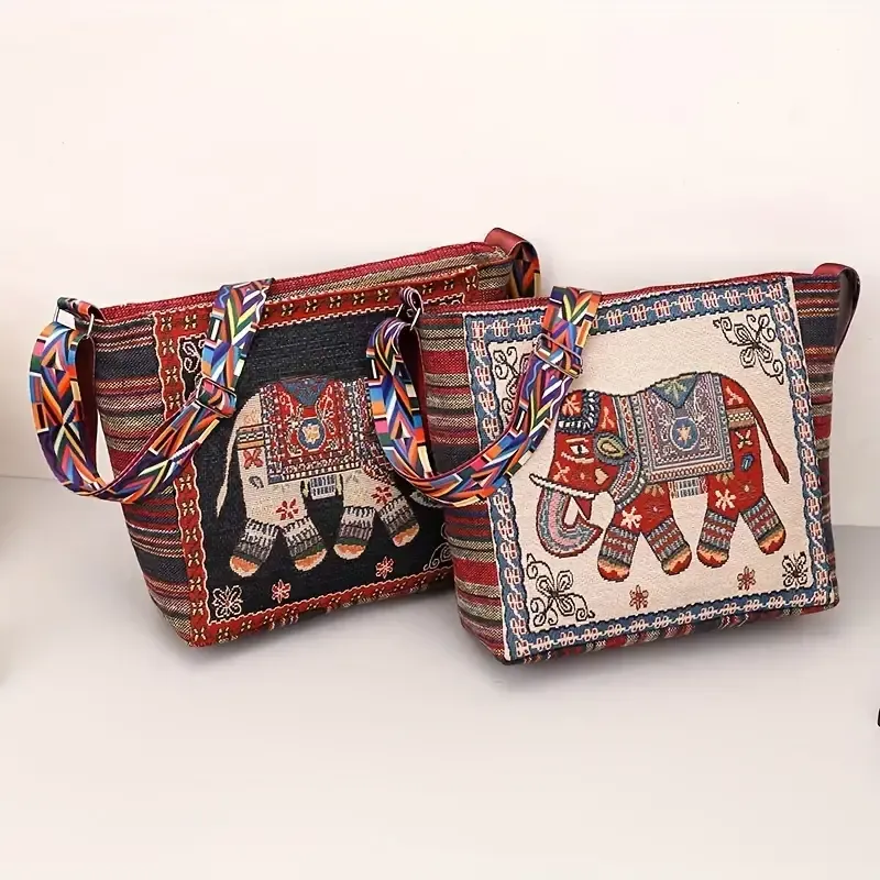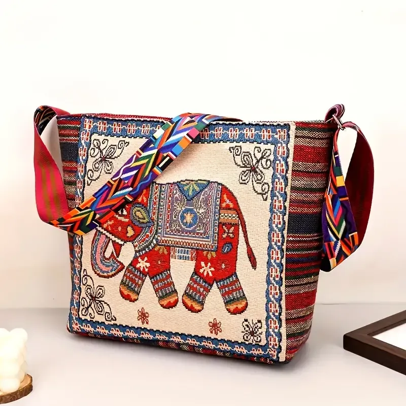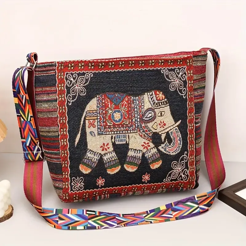 Bohemian Tribal Embroidered Elephant Shoulder Bag