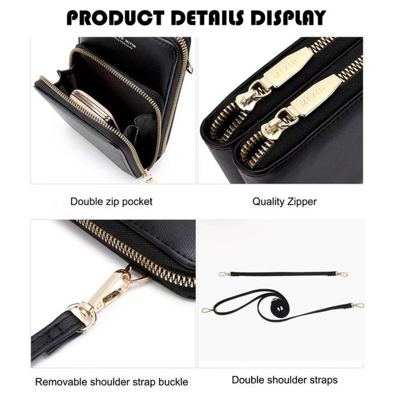 Dual Pocket Design: This is a vertical mobile phone bag with two places for the phone, which is very convenient for women who use less than two mobile phones. In addition, there are 2 card slots and a zipper position for commonly used cards and coins and banknotes. It's easy to go out without your regular wallet.