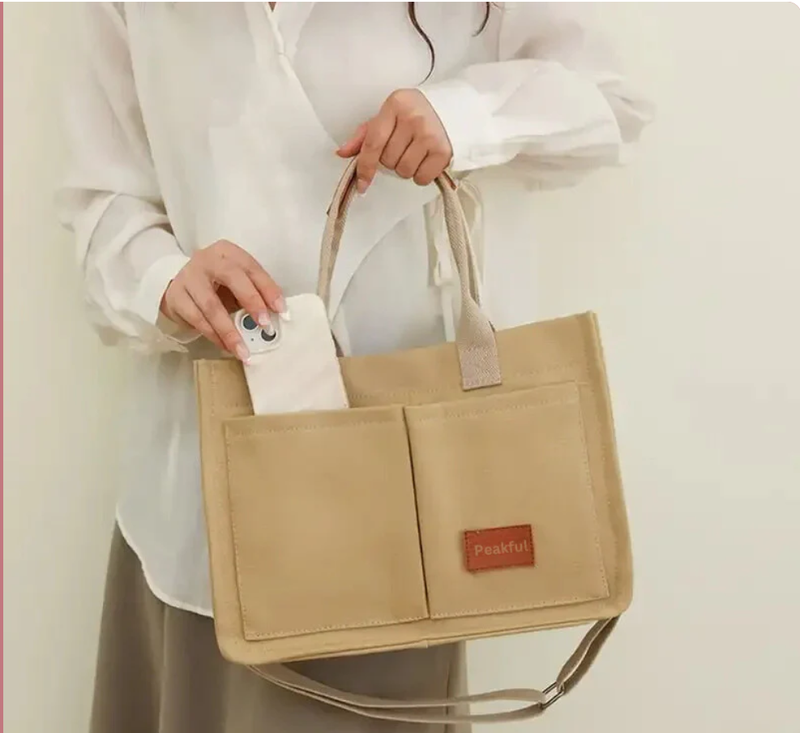 Our Peakful Tote Bag solves all these problems with ease.Thoughtfully designed with multiple pockets and a spaciousinterior, it keeps everything in its place, making your lifemore organized and stylish. Whether you're heading towork, traveling, or enjoying a day out, this bag will have youlooking and feeling put-together.