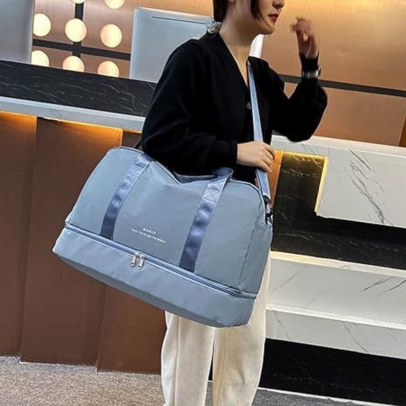 Travel Duffel Bag with Leather Shoes Compartment for Men, Women
