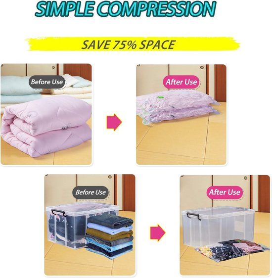 - Make your cloakroom efficient and compact to save space Vacuum compression bags free up 80% of your closet space and effectively save closet space