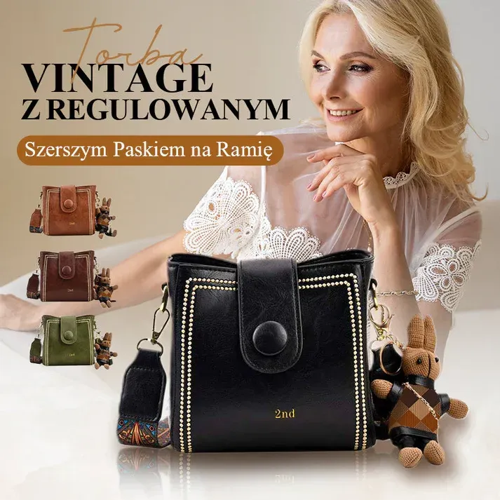 Vintage Bag with Adjustable, Wider Shoulder Strap (Black)